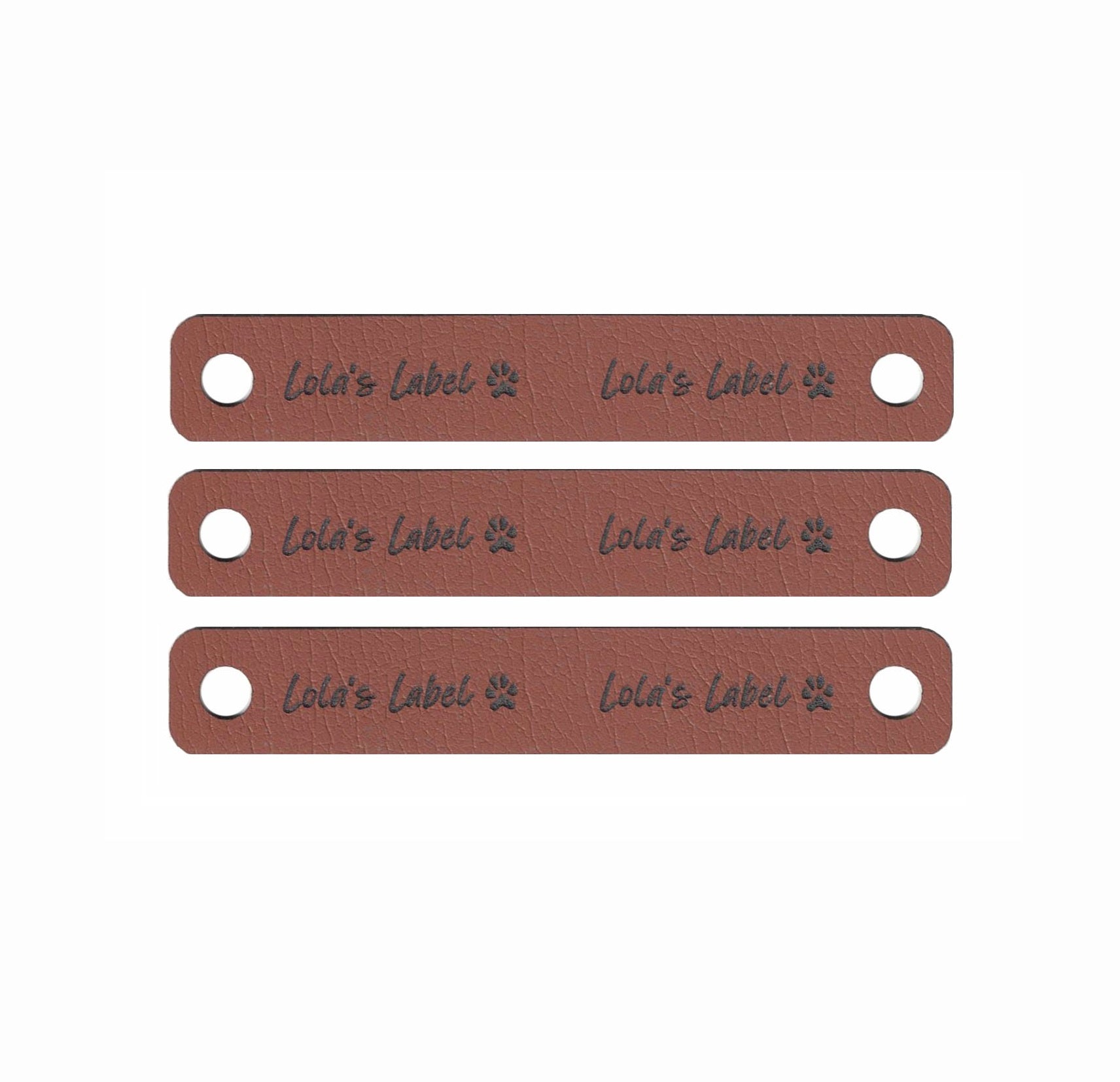 These tags are made from soft faux leather material. We carry a verity of colors for you to choose from. The image is laser engraved onto the faux leather and cut. The color chart indicates how each engraving shows up on each color. This can not be adjusted.