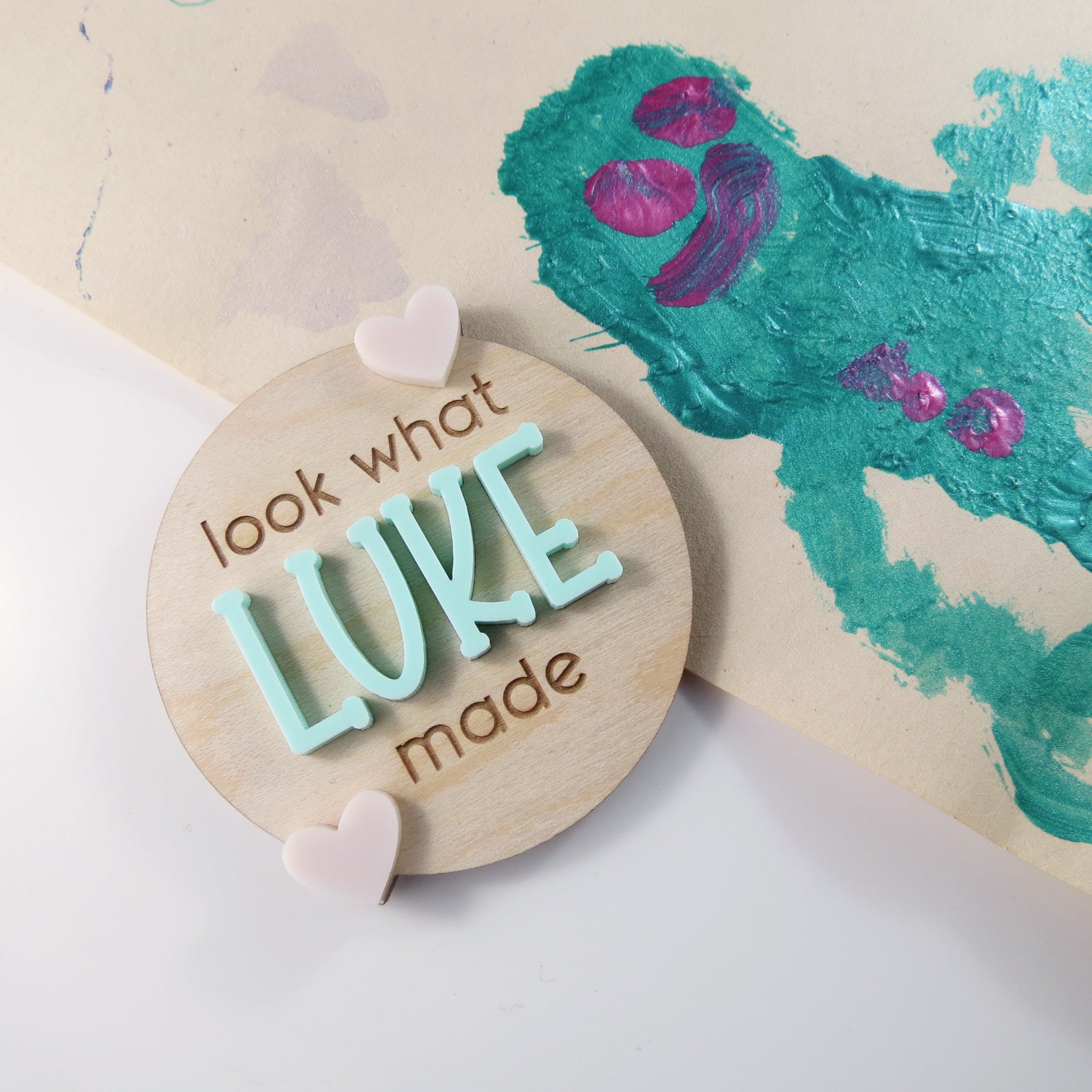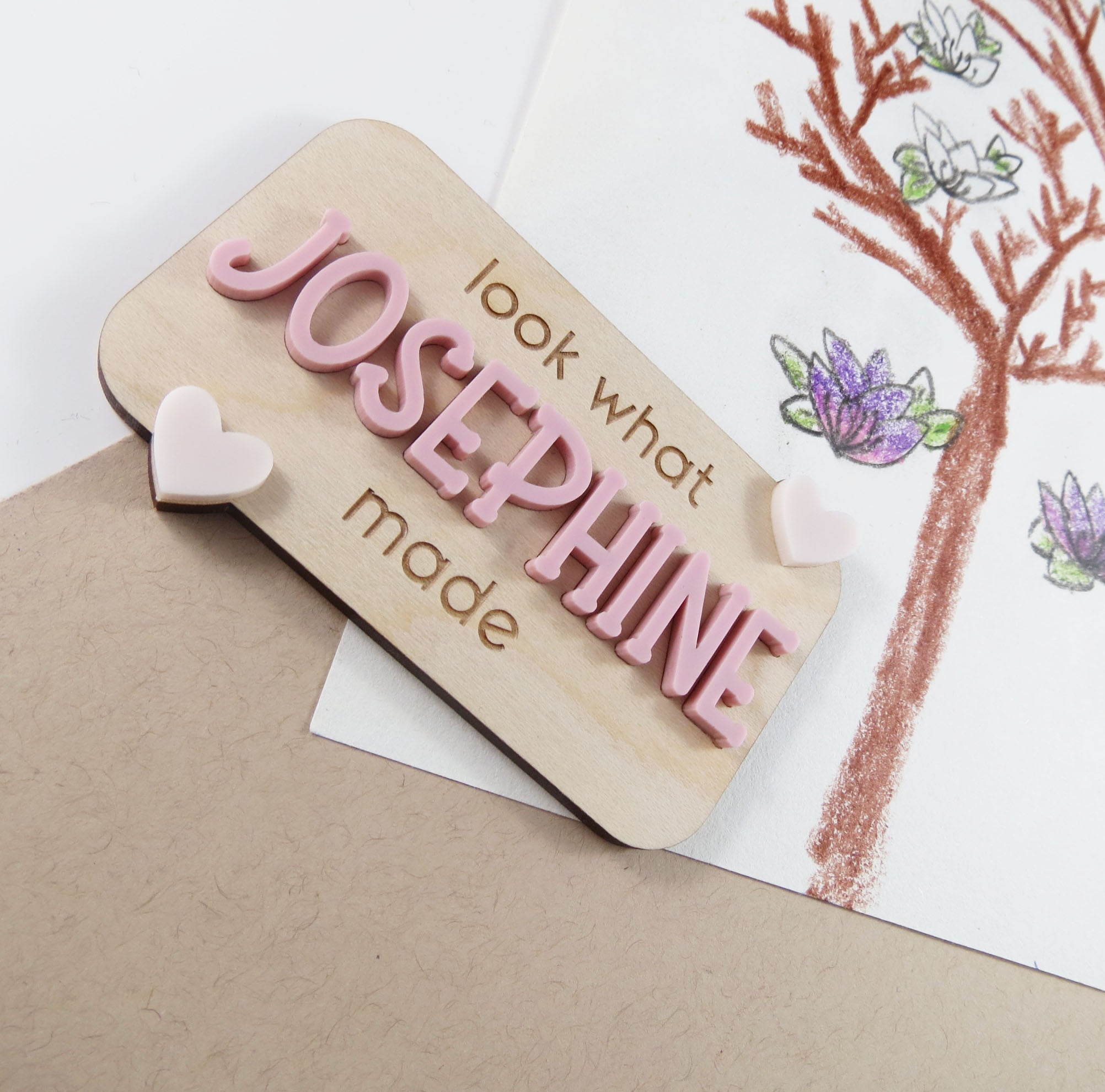 Personalized magnet with custom name - Cheerfully display your child's artwork - Unique gift option.